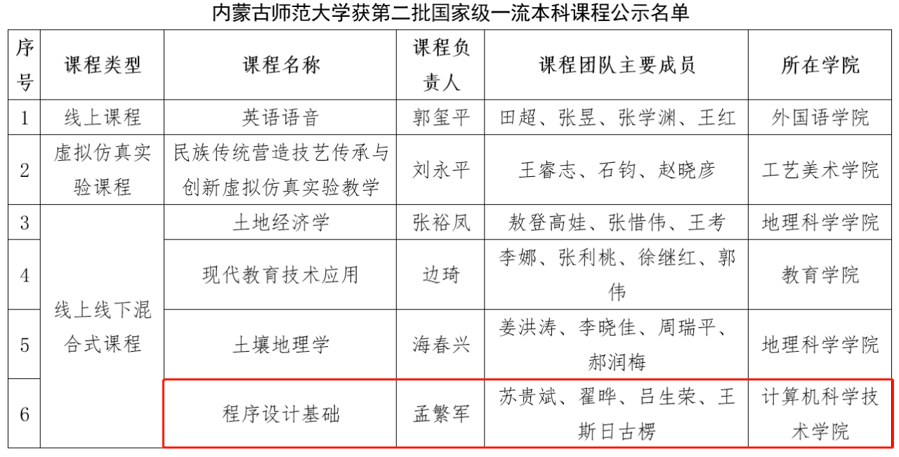 4月11日,教育部高等教育司发布了《关于第二批国家级一流本科课程认定结果的公示》,必赢官网程序设计基础教学团队负责建设的《程序设计基础》课程名列其中,是必赢官网被认定的第二门国家一流线上线下混合式一流课程。