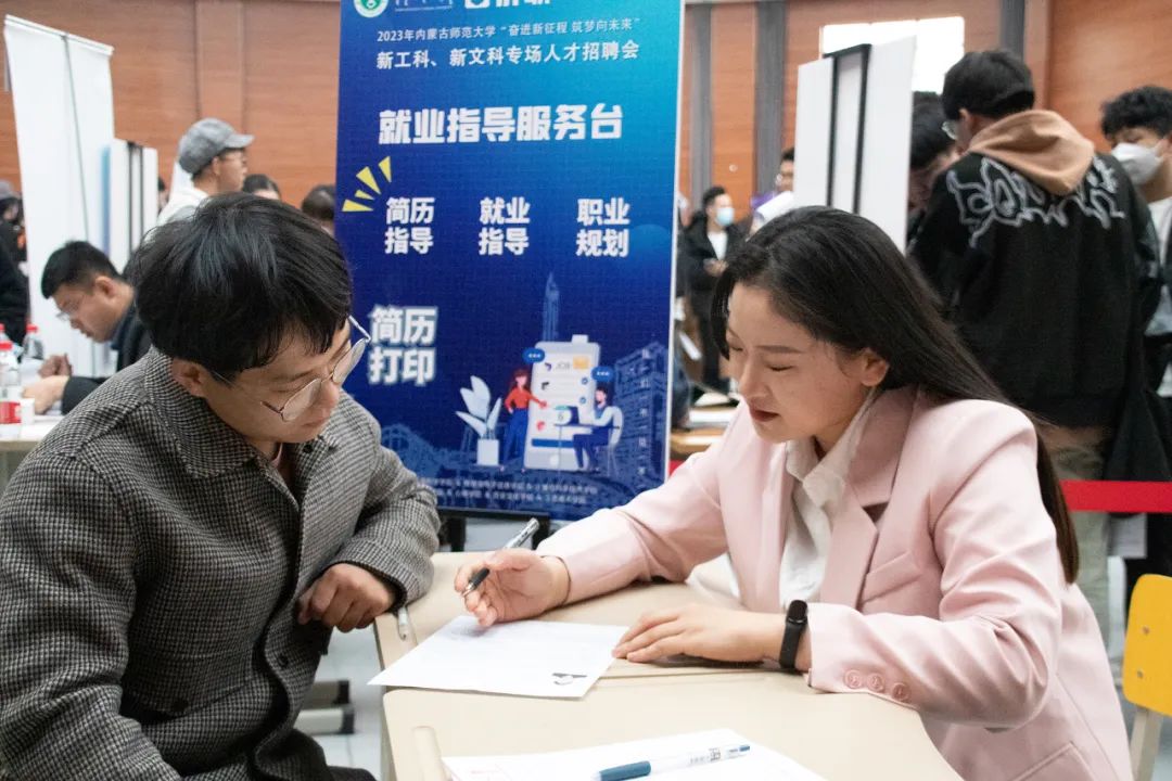 3月24日,由我校招生就业处主办,437必赢会员中心、化学与环境科学学院、物理与电子信息学院、地理科学学院、心理学院、历史文化学院、工艺美术学院承办的“奋进新征程 筑梦向未来”437必赢会员中心2023年新工科、新文科专场人才招聘会在盛乐校区学生事务中心二楼多功能演播大厅举行。校党委副书记张海峰及相关部门、学院负责同志现场参加活动,必赢官网党委书记玉柱、副书记、副院长沙金,毕业生辅导员与用人单位及毕业生亲切交流。437必赢会员中心共有来自29家单位招聘岗位数658个,共有287人有签约意向并投递简历,其中本科生266人,研究生21人。