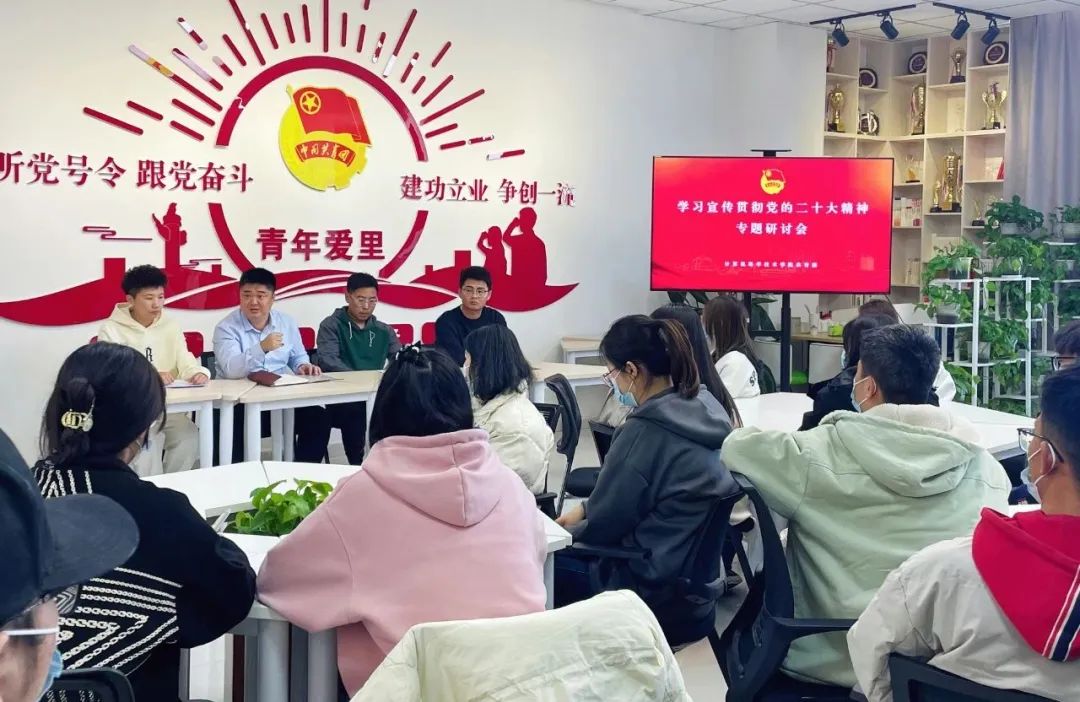 3月2日,437必赢会员中心共青团在青年爱里开展学习宣传贯彻党的二十大精神专题研讨会,学院团总支书记赵巍伟、副书记白洋、兼职团干部乔雅洁、王子涛以及学院各团支部书记、副书记(班长)、学生干部代表、社团负责人参加研讨会。