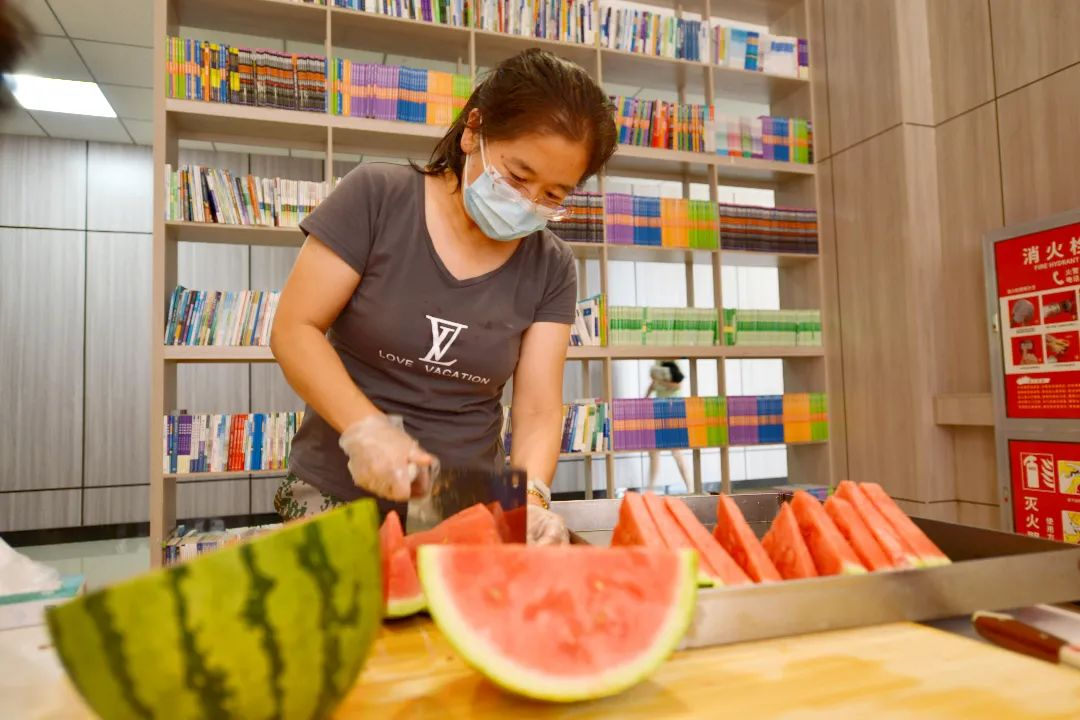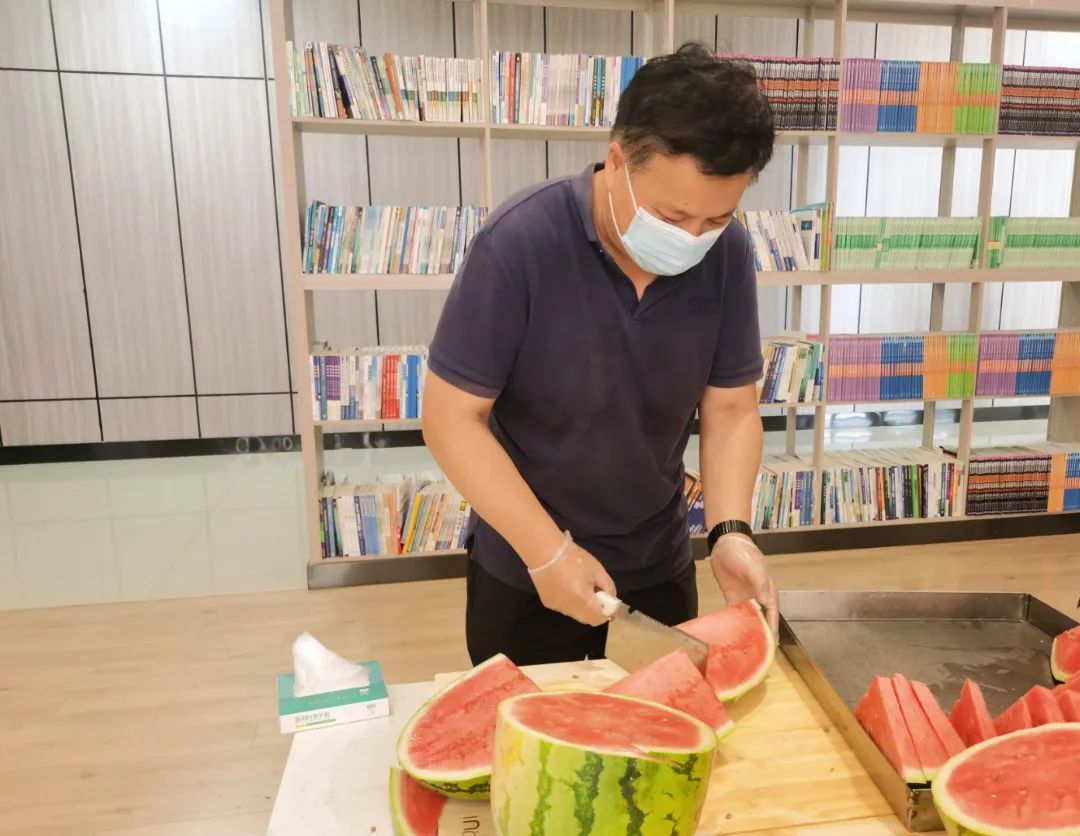 8月2日,437必赢会员中心购买了2000余斤西瓜,为在校的1076名学生送上解暑神器。学院副院长斯琴图,副院长智敏以及全体辅导员将切好的西瓜“上门配送”到学生公寓和教室,将夏日的清凉带到全体计科青年学生的身边。