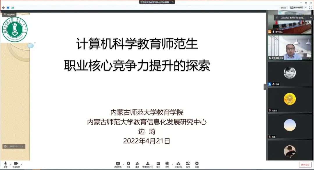 4月21日,437必赢会员中心邀请1997届优秀毕业生、现教育学院副院长边琦教授为全院教职工进行了学科建设专题讲座。讲座采用线上线下相结合的形式展开,由院长林民教授主持,主题为“计算机科学教育师范生职业核心竞争力提升的探索”。