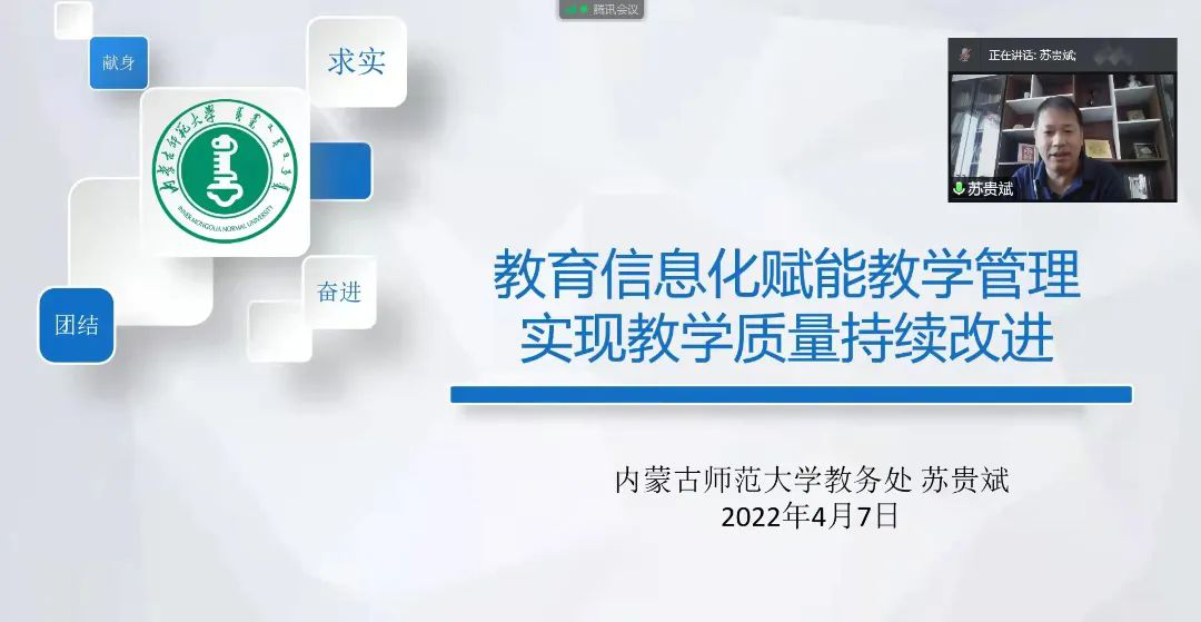 4月7日,必赢官网邀请了教务处副处长苏贵斌副教授为全院教师进行了题为“教育信息化赋能教学管理,实现教学质量持续改进”的专题讲座。讲座采用线上线下相结合的方式展开,由院长林民教授主持。