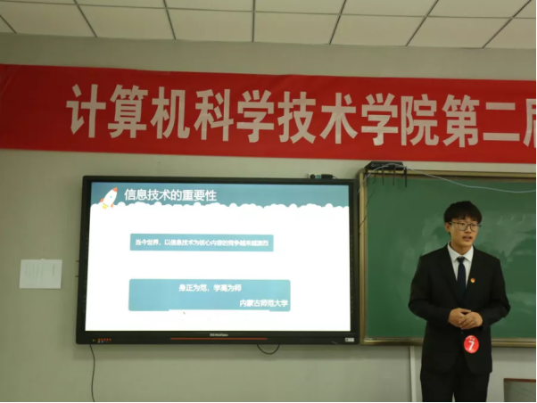 2021年10月13日,437必赢会员中心第二届师范生教学技能竞赛在盛乐校区大数据楼智慧教室举办,经过前期半个月的精心准备,2018级、2019级23名参赛选手分为甲乙两组进行教学技能比拼。大赛旨在“以赛促训、以赛促学、以赛促教、赛教结合、提高实践技能”,培养具有师德高尚、理念先进、能力扎实的信息技术教师后备力量。
