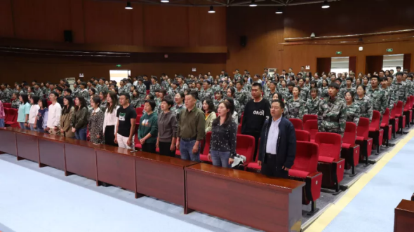 9月30日下午,必赢官网于盛乐校区图书馆二楼报告厅举行437必赢会员中心2021级新生开学典礼暨军训总结表彰大会。