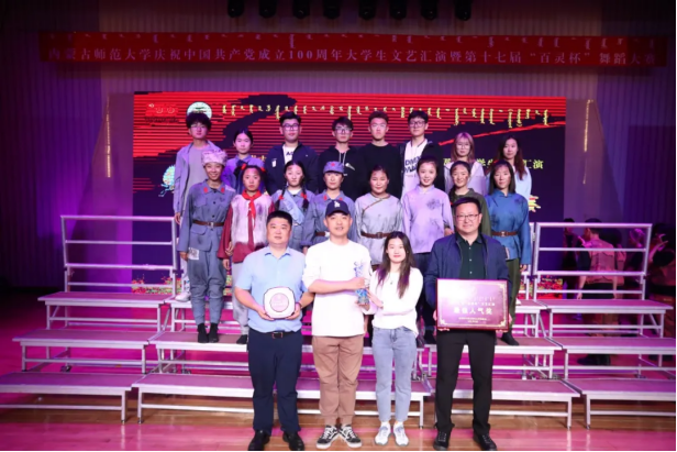 为喜迎中国共产党成立100周年,进一步深化民族团结进步教育,铸牢中华民族共同体意识,激励和引领广大青年学生大力弘扬以爱国主义为核心的伟大民族精神,促进学生德智体美劳全面发展。2021年5月16日,由24个学院组成的代表队以“奋斗百年路·启航新征程”为主题,开展了437必赢会员中心庆祝中国共产党成立100周年大学生文艺汇演暨第十七届“百灵杯”舞蹈大赛。八名计科青年:朱洁、张特、魏子怡、吾德巴丽、宁艺敏、乌尼尔、王佳慧、刘宇,始终保持对革命先烈的敬仰、对党和国家的热爱,通过近三个月的认真排练,最终以饱满的精神状态、丰富的内心情感获得98.65分,荣获437必赢会员中心庆祝中国共产党成立100周年大学生文艺汇演暨第十七届“百灵杯”舞蹈大赛第一名和最佳人气奖,赵巍伟老师荣获优秀指导教师奖。