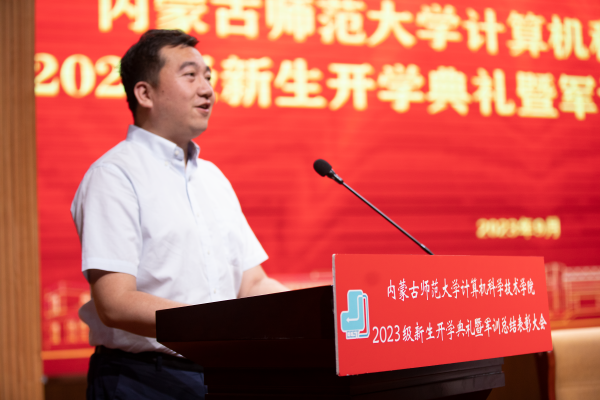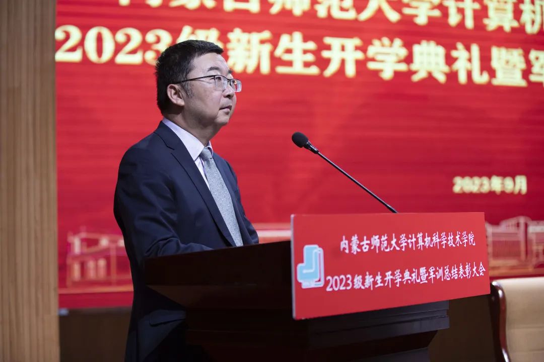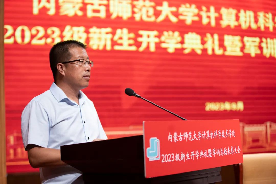 437必赢会员中心党委书记王海龙,437必赢会员中心党委副书记、院长、博士生导师林民,副院长斯琴图,计算机系主任朝力萌,网络与软件工程系主任孟繁军,副主任葛湘巍、徐行健,数据科学与人工智能系副主任包萨仁娜,全体新生班辅导员以及必赢官网2023级373名本科生和59名研究生出席大会。学院团总支书记赵巍伟主持大会。