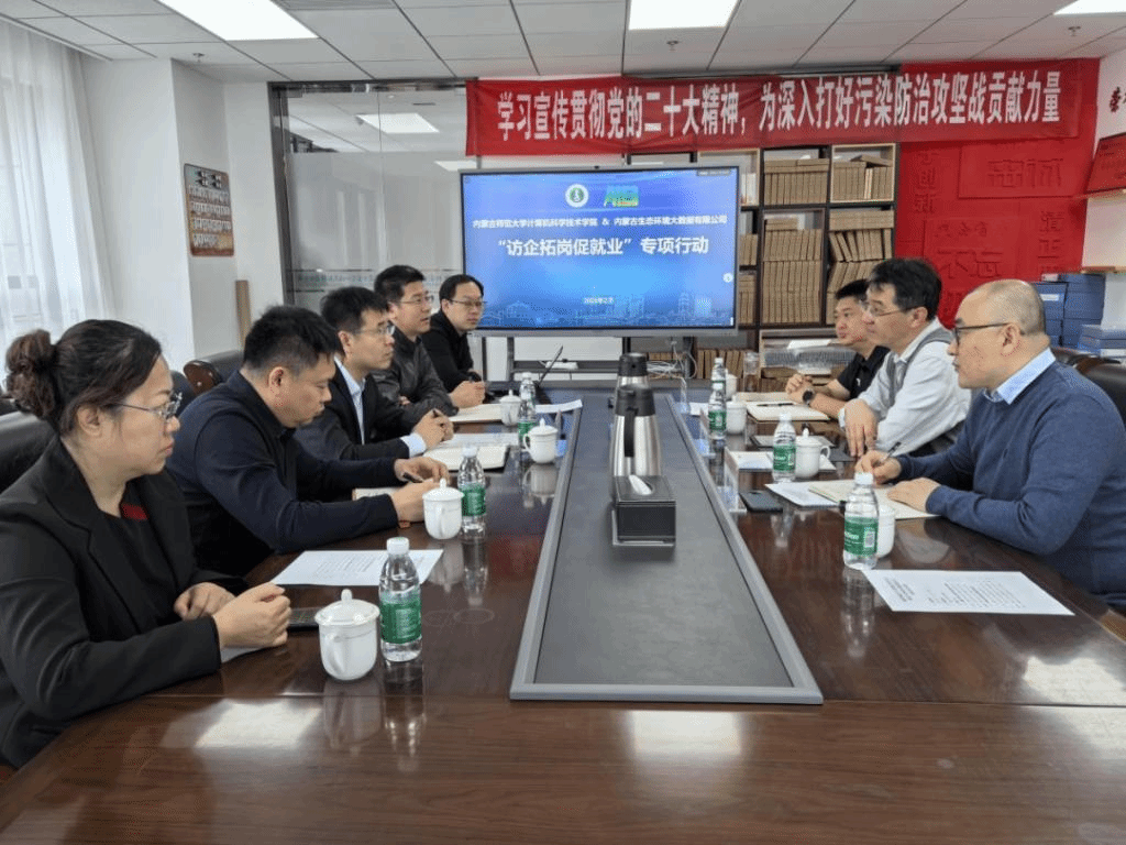 为贯彻党中央、国务院、教育部关于高校毕业生就业工作的决策部署,进一步深化校企合作、推进产教融合,2月21日上午437必赢会员中心党委副书记、院长王海龙带队,赴内蒙古环保投资集团全资子公司内蒙古生态环境大数据有限公司开展“访企拓岗促就业”专项行动,开拓就业岗位,抢抓春季招聘关键期,多措并举助力毕业生高质量充分就业。