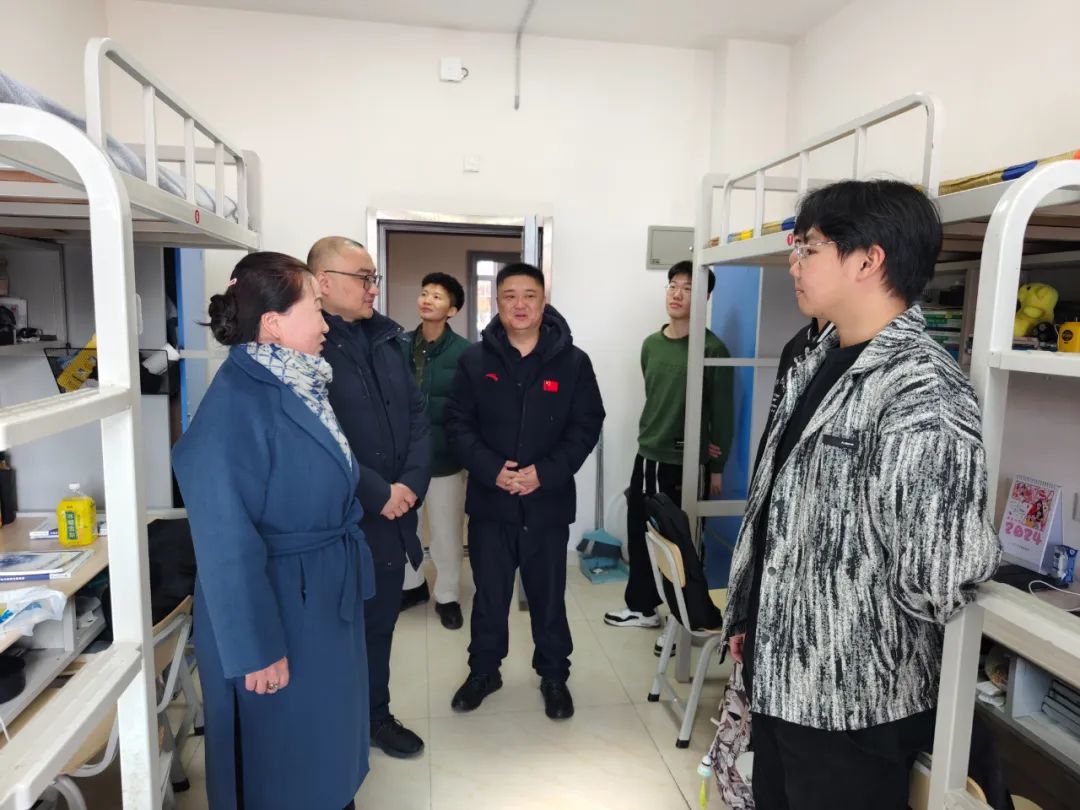新年伊始,寒假结束,为了解必赢官网同学返校情况,掌握学生思想动态,2024年2月25日,学院党委书记乌日其木格,副院长柳林一行来到学生公寓走访慰问,为同学们送去关心和问候。乌日其木格书记、柳林副院长叮嘱大家及时调整生活状态,规律作息,以饱满的精神面貌迎接新学期的学习生活。同时,老师们细致地了解了同学们新学期的课业安排、学习规划,以及同学们的所求所需,共同解决大家在学习和生活中的问题。