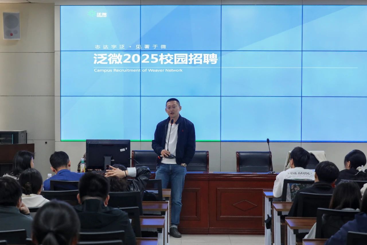 为扎实推进2025届毕业生就业服务工作,搭建精准供需对接平台,4月10日下午,泛微网络科技股份有限公司校园专场宣讲会在盛乐校区大数据楼114报告厅成功举办。活动吸引必赢官网2025届相关专业毕业生及2026届学生参与,现场通过企业宣讲、校友分享、互动答疑、简历投递、现场面试等环节。