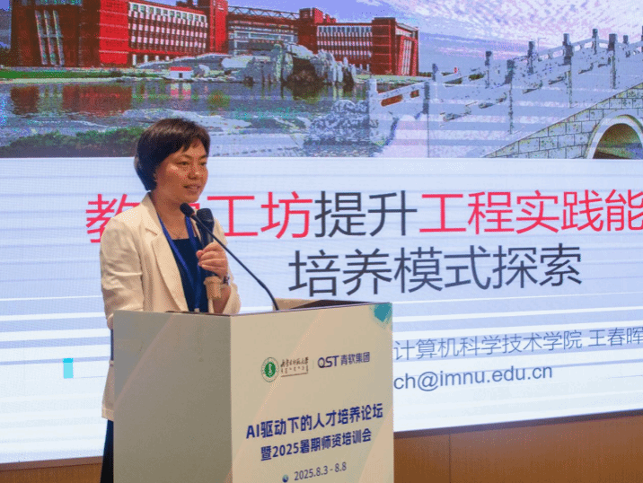 青软集团产教融合研究院院长丁璟详细阐述“AI技术深度融合教育和人才培养的实践与探索”,分享校企协同育人的宝贵经验。