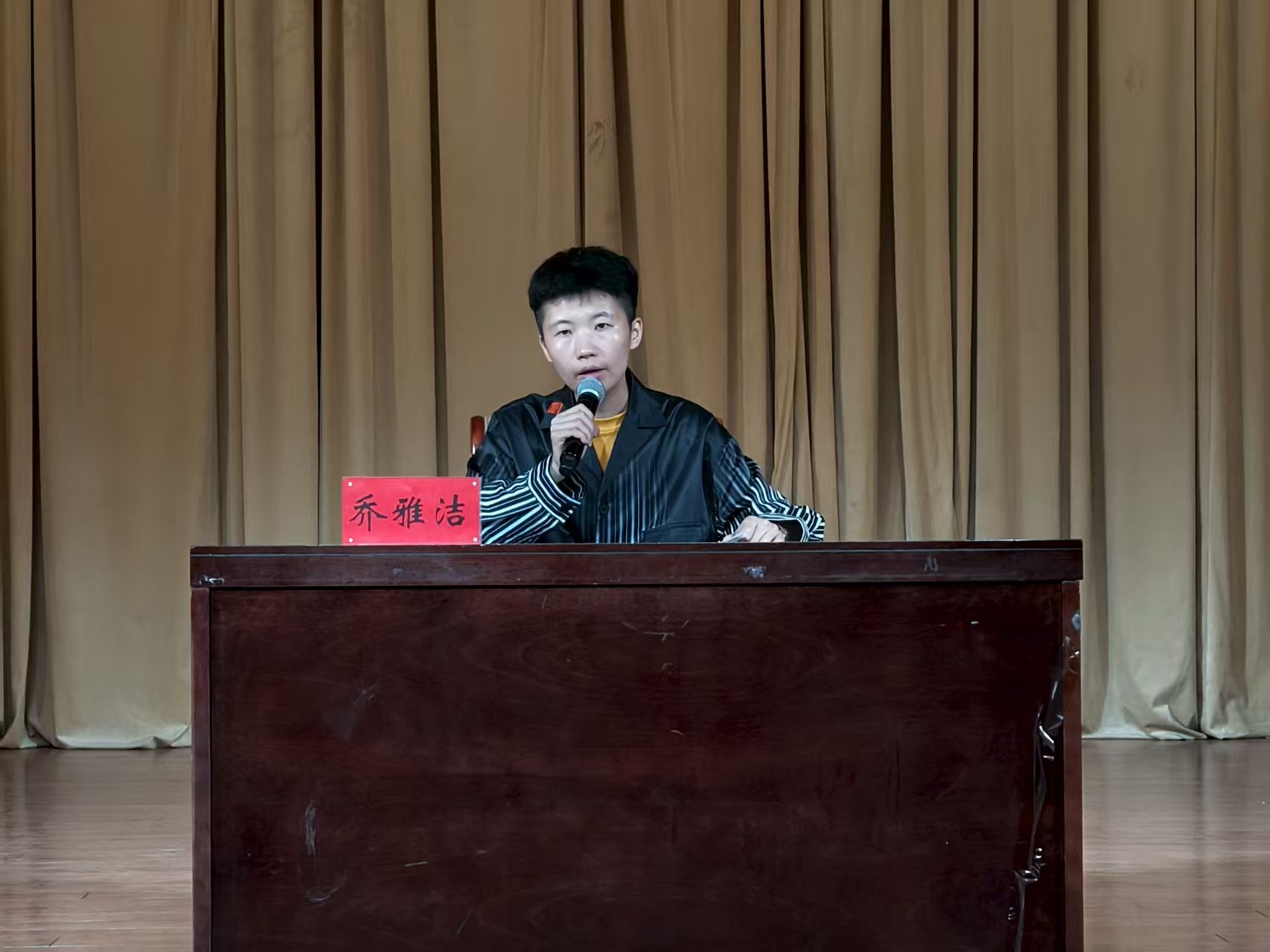 辅导员乔雅洁介绍了学校“奖、助、贷、勤、免、补”六位一体的资助政策体系,详细说明了各类奖助学金的申请条件、办理流程和注意事项。她表示,学院将持续做好资助育人工作,为家庭经济困难学生提供全面保障,助力每一位学生安心求学、全面发展。