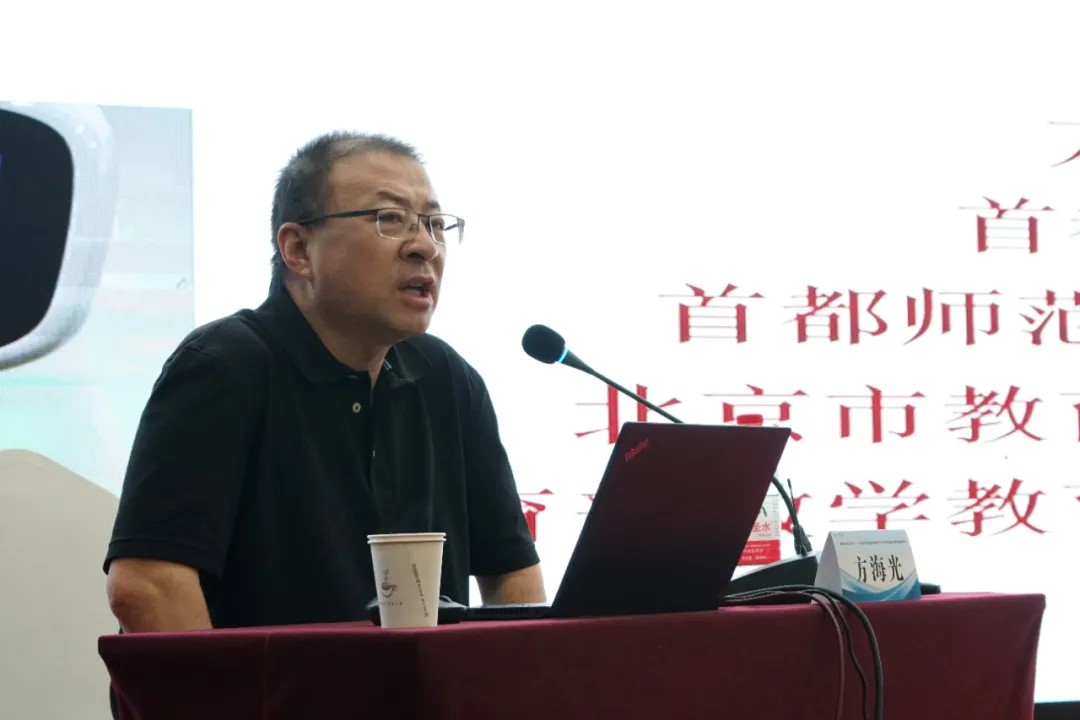 首都师范大学教育学院教授、博士生导师方海光以《教育数字化转型背景下的中小学人工智能课程设计与实施》为主题作报告。方海光教授担任北京市教育大数据协同创新研究基地主任,教育部数学教育技术应用与创新研究中心主任,教育部“基于教学改革、融合信息技术的新型教与学模式”实验区专家,教育部“智慧教育示范区”专家,“十四五”国家重点研发计划“智慧教育”专家,教育部教育信息化专家,北京师范大学智慧学习研究院智慧学习首席研究员,首都师范大学远程教育研究所所长,首都师范大学人工智能教育研究院研究员,数字化学习实验室主任,美国密歇根州立大学访问学者,挪威奥斯陆大学学院访问学者,北京师范大学博士后,中国科学院计算机博士等。主持和参加了国家社科规划项目、自然基金项目等50余项。发表论文100余篇,出版专著和教材10余部,拥有软件著作权10余项。